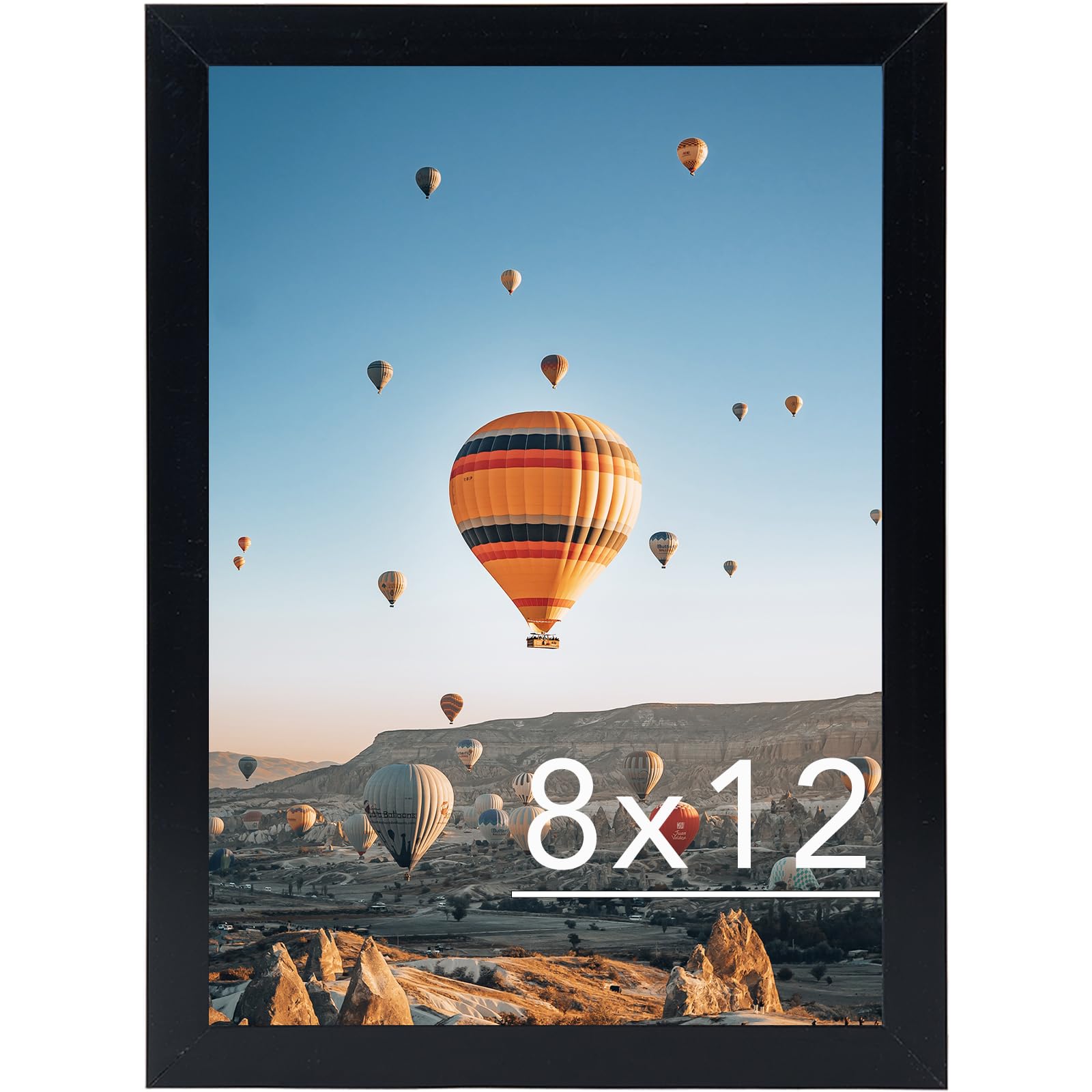 FRAME SIZE: The black picture frame fits 8×12 photos, simple and stylish, the frame opening display will be 0.5 inches smaller than the photo to better hold the photo instead of a defect.